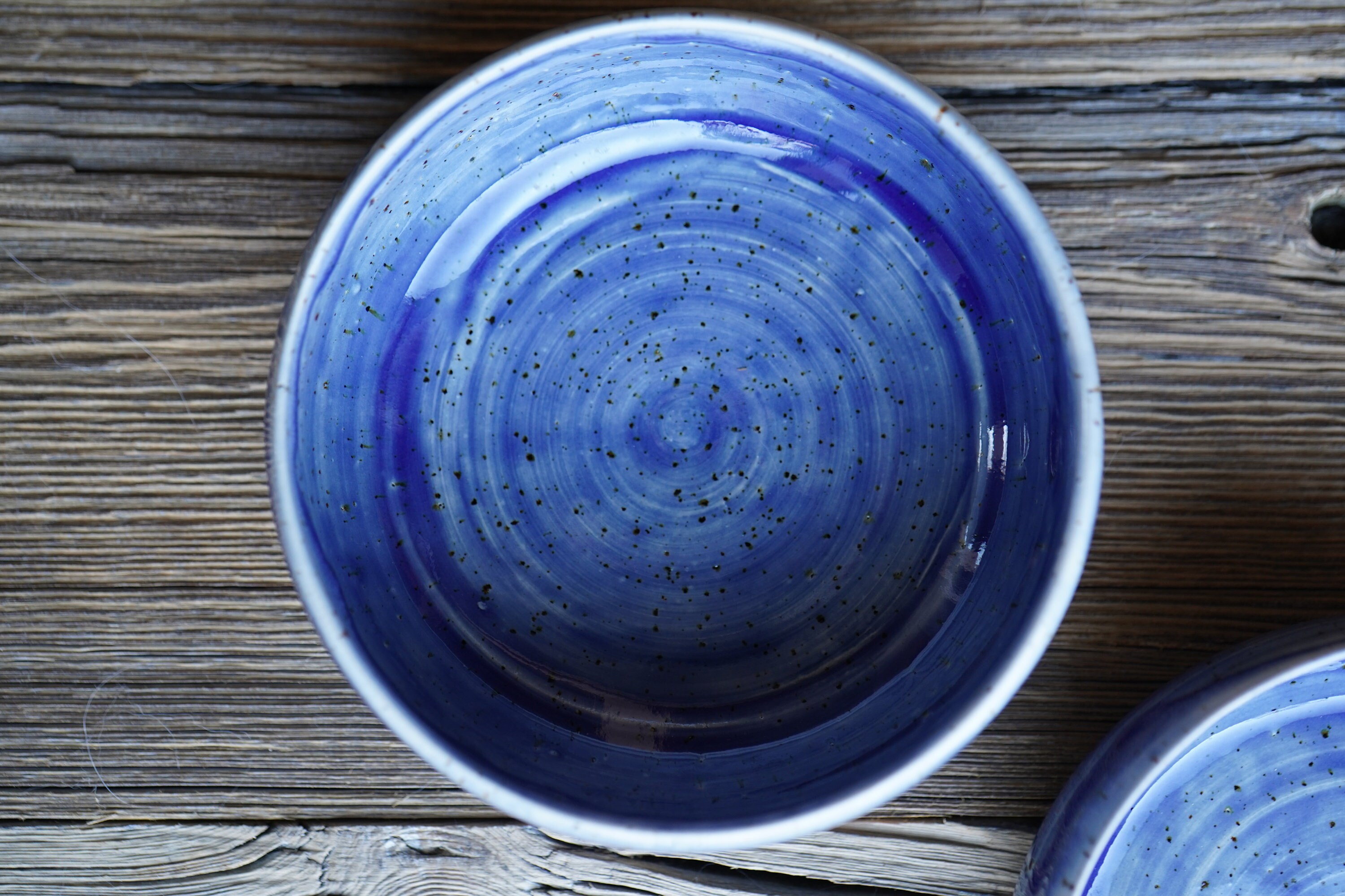 handgetöpferte meerblaue Keramik Bowl Schale für Frühstücks Müsli, Quark oder Suppe,... in modernem Design Ø 12 cm Höhe 7 cm