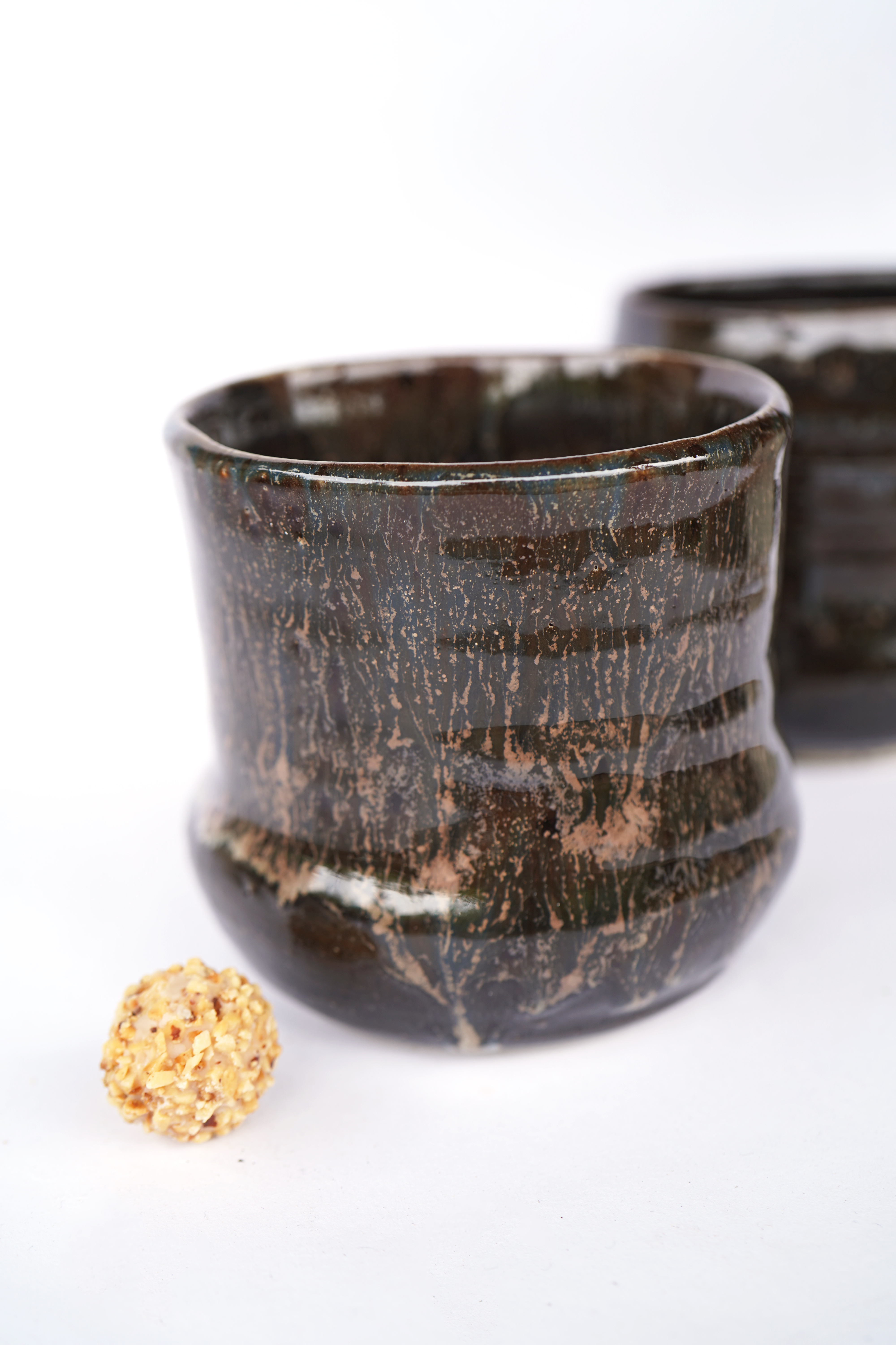 Diese einzigartige handgefertigte Tasse bringt rustikalen Charme und Individualität in Dein Zuhause. Jede Tasse ist sorgfältig auf der Töpferscheibe gedreht und mit einem besonderen dunklen, glänzenden Finish versehen. Die subtile Textur auf der Oberfläche verleiht ihr ein modernes, aber gleichzeitig warmes und sehr edles Aussehen.