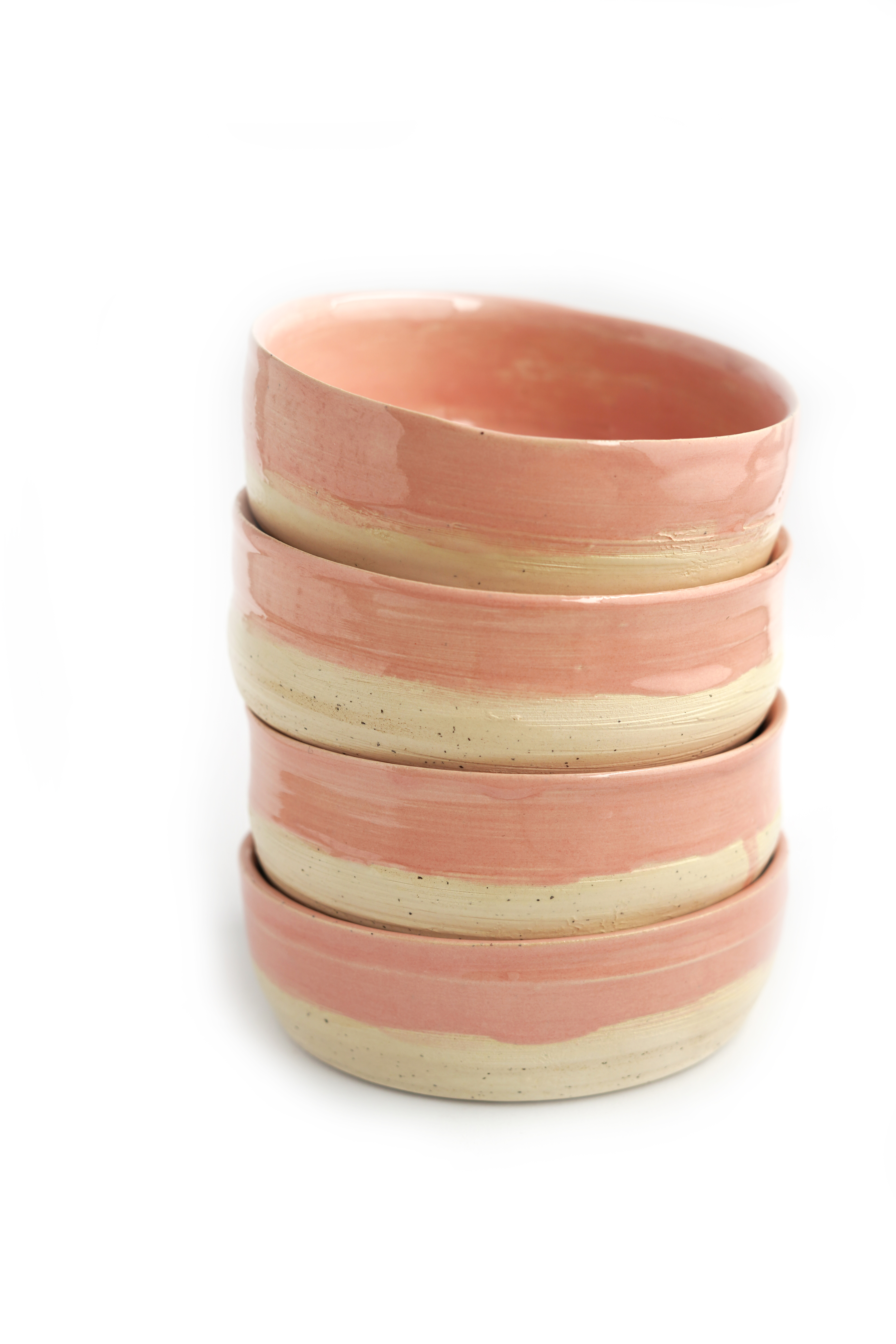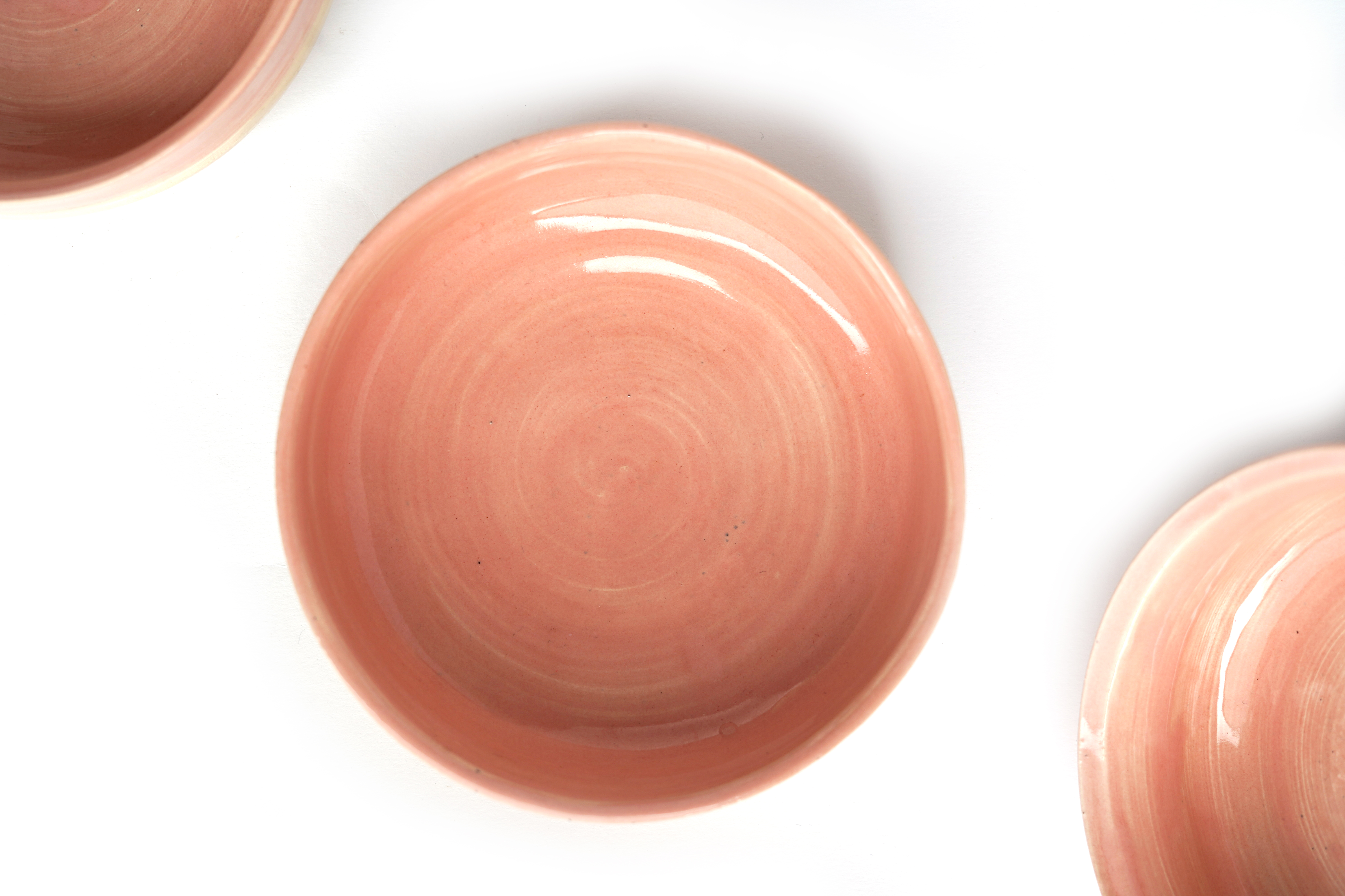 handgetöpferte rosane Keramik Bowls, Schälchen für Frühstücks Müsli, Quark, etc.. in modernem Design, halb Rosa Ø ca 13 cm Höhe ca 5 cm, spülmaschinenfest