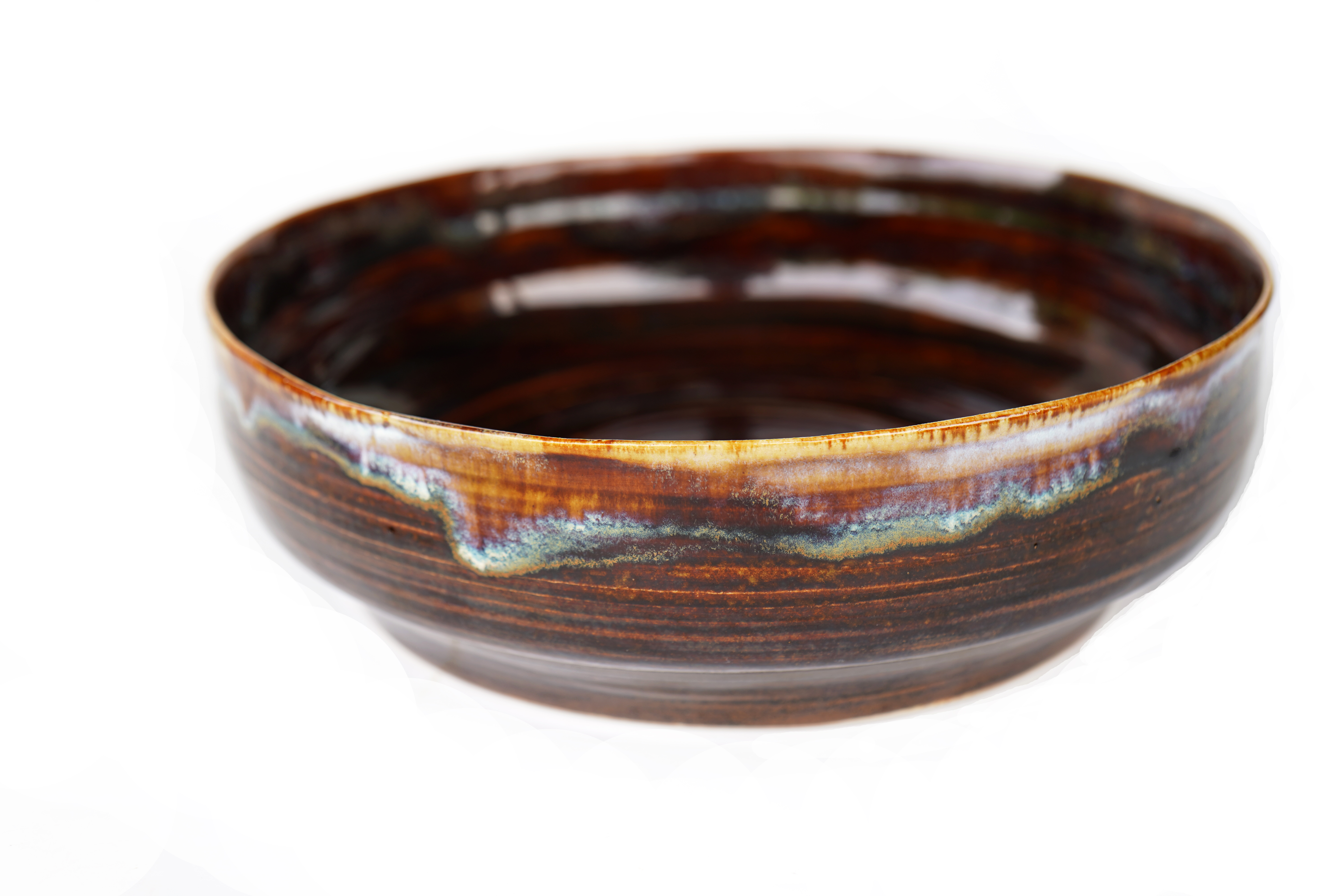 Diese exklusive handgetöpferte Keramikschale ist ein einzigartiges Kunstwerk, das traditionelles Handwerk mit modernem Design vereint. Die warmen, erdigen Farben der Schale, die durch eine hochglänzende Glasur hervorgehoben werden, verleihen jedem Raum ein rustikales und zugleich elegantes Ambiente. Die Schale wurde sorgfältig hergestellt und weist subtile, natürliche Variationen auf, die sie zu einem Unikat machen.
