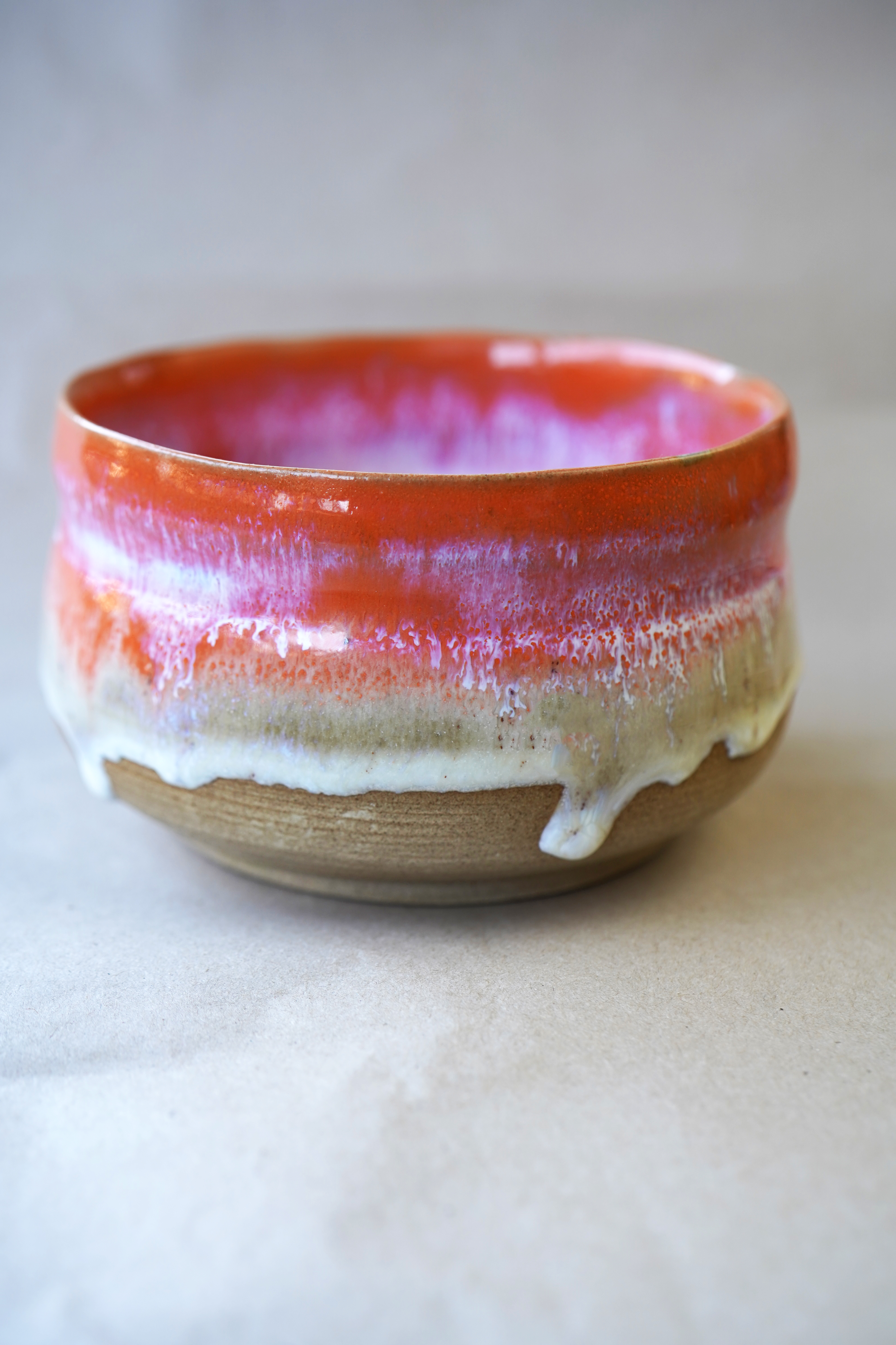 Mobile Preview: Matcha Schale orange weiß Schimmer